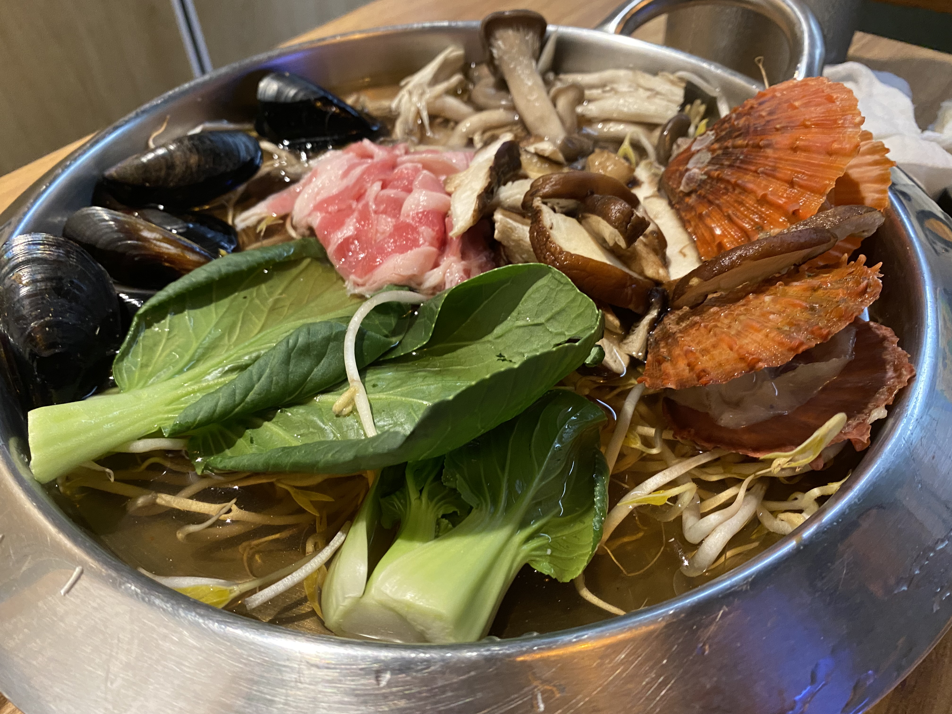 홍합, 가리비, 각종 버섯, 고기, 야채 등