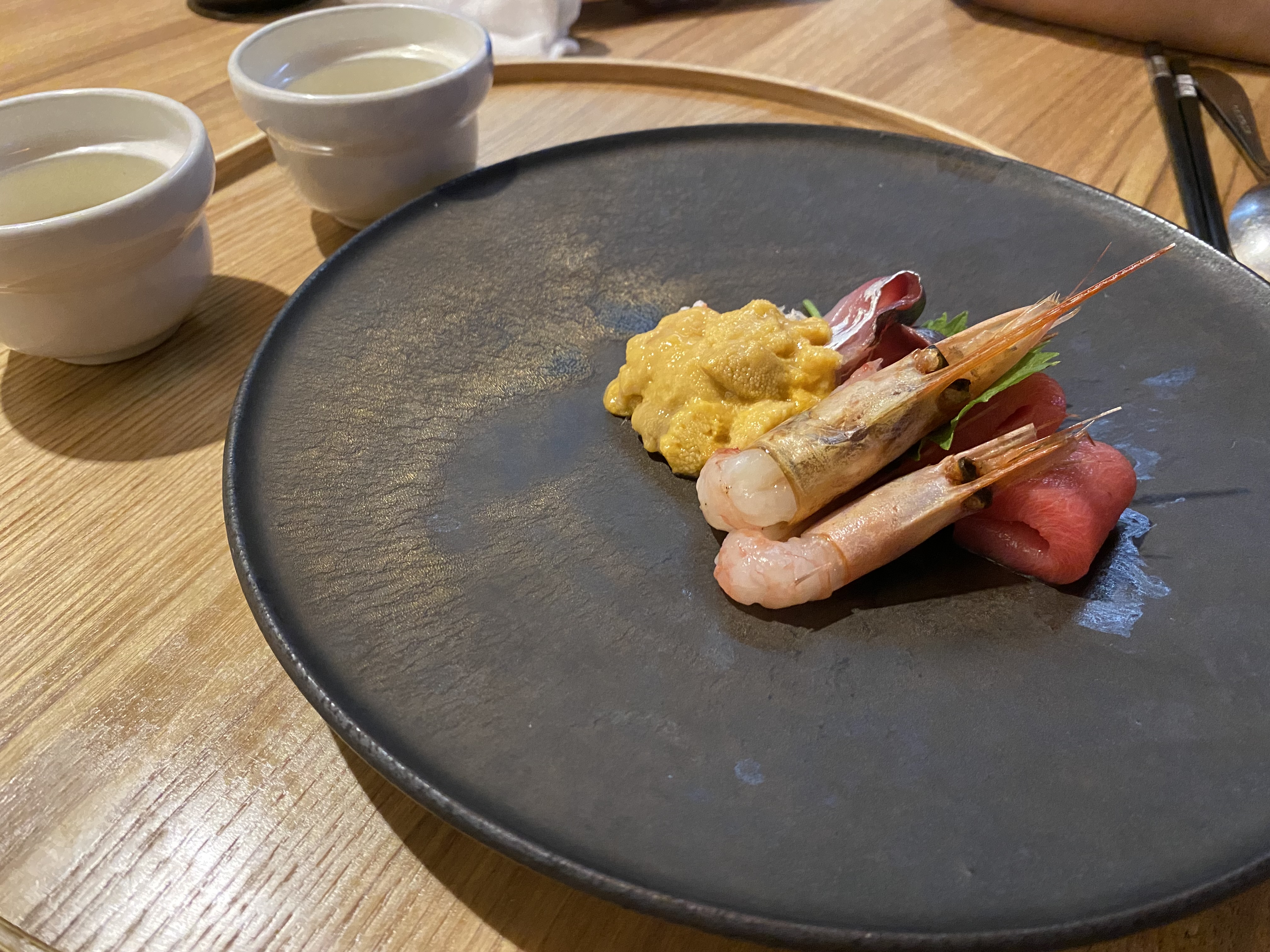 다섯번째 음식은 단새우, 참치, 우니,