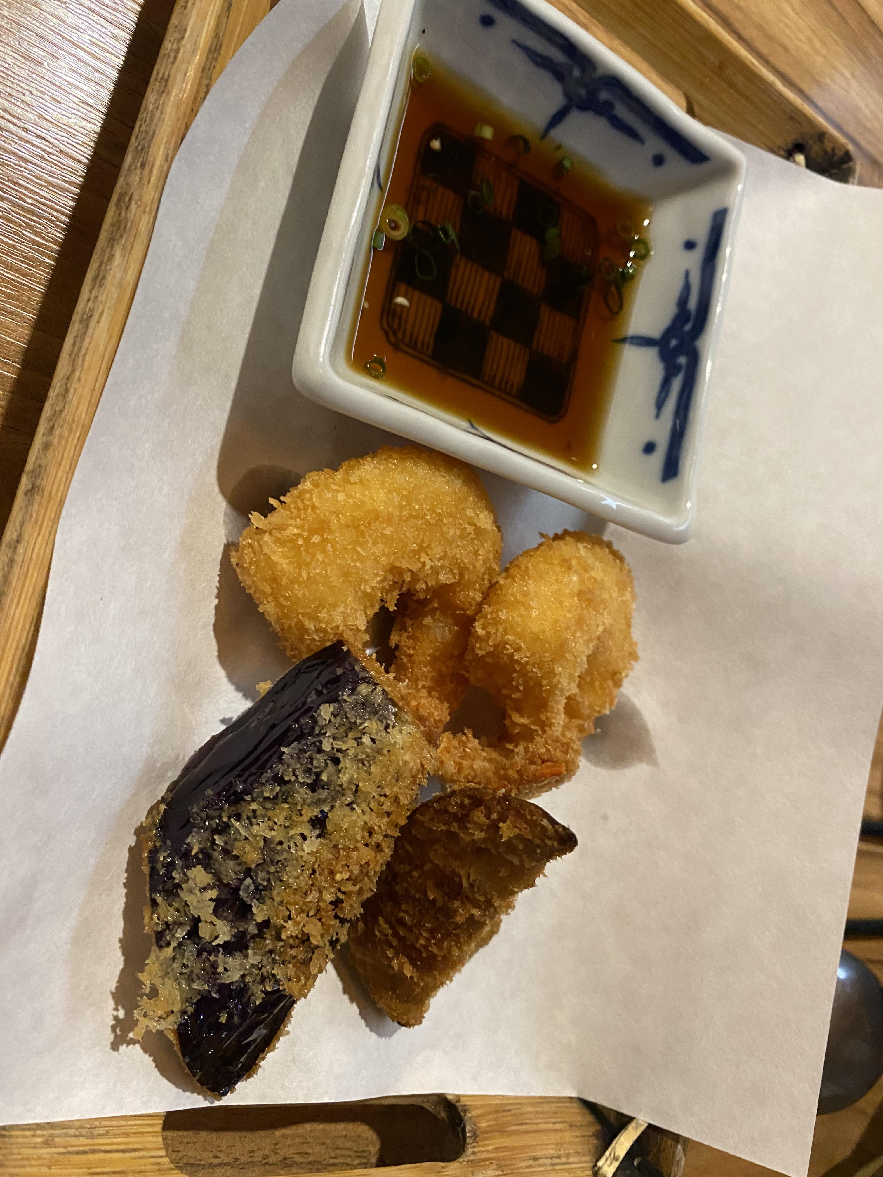 오늘은 가지와 새우튀김이 나왔는데