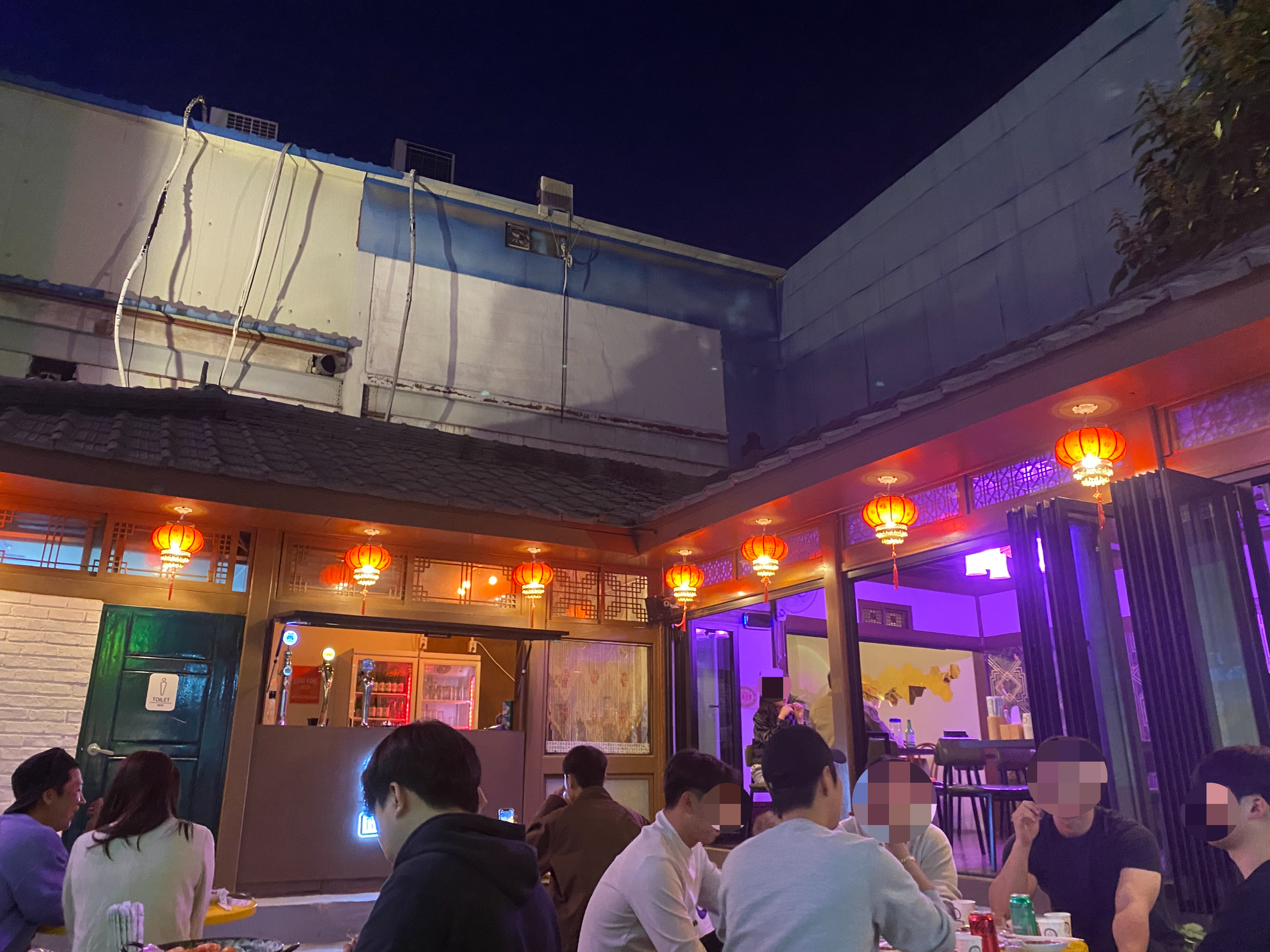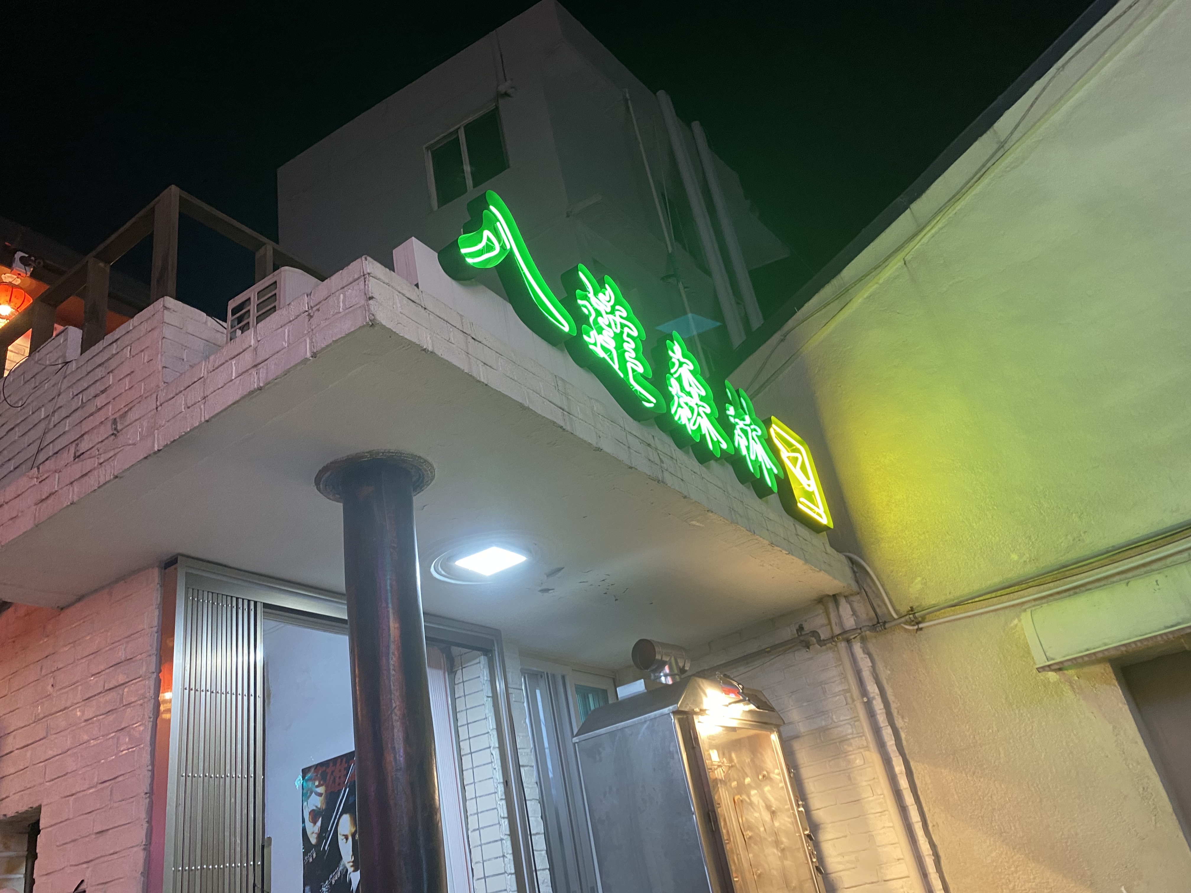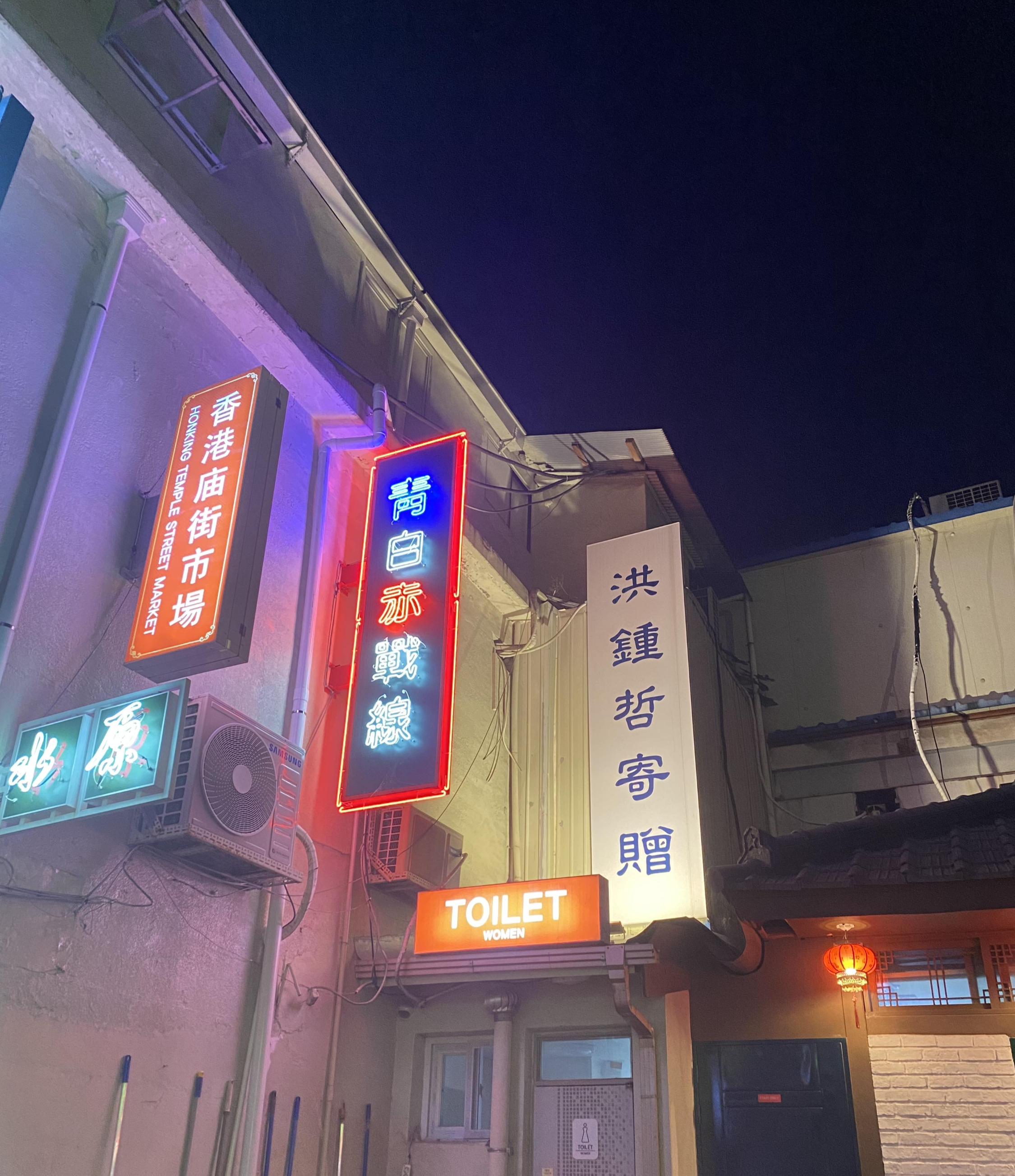 네온사인과 빨간색 등이 분위기를 만들어줘요.